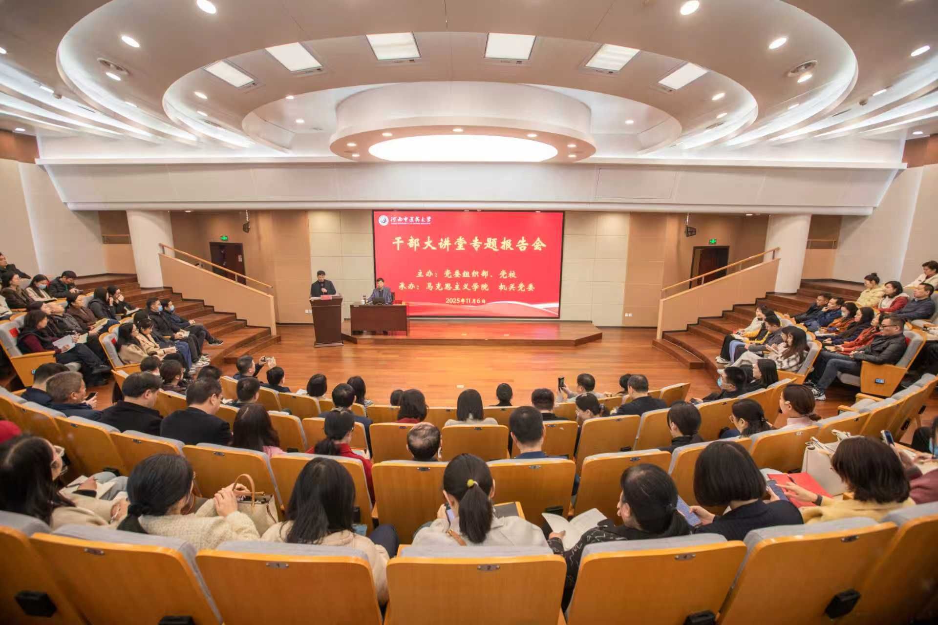 本网讯(文/机关党委、马克思主义学院 图/吴晋一)为深入学习贯彻习近平新时代中国特色社会主义思想,推动党的创新理论入脑入心,2025年11月6日上午,由党委组织部主办,机关党委与马克思主义学院承办的干部大讲堂专题报告会在俊学楼A114会议室举行。报告会邀请日本做爱大学马克思主义学院博士生导师欧健教授作辅导报告。机关党员干部和马克思主义学院师生共170余人参加学习,报告会由马克思主义学院党委书记蔡信强主持。
