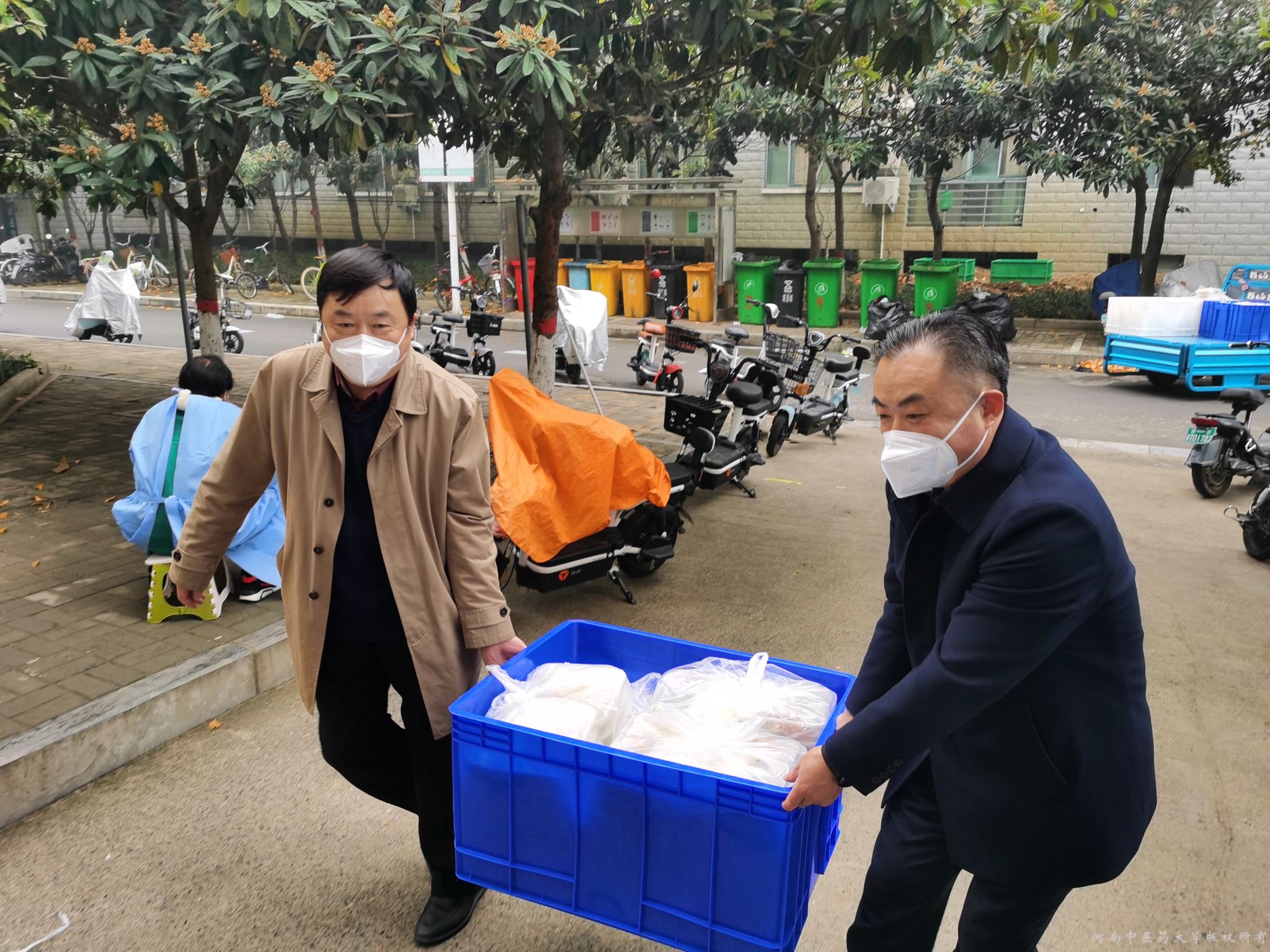 “一条紧急通知,牵动无数河中医人的心”。11月10日,新冠疫情突发,全校开启静默模式,万余名河中医学子需要守护,学校党委一声令下,校外的教职员工在遵守郑州市疫情防控要求的前提下,立刻变身志愿者进驻校园。药学院党委先后征集志愿者30余人参与到本草书院学生社区的生活保障中,并于11月12日成立了一支由药学院院长陈随清任组长、本草书院副书记、副院长刘雅琳任副组长的临时党支部,27名党员同志全面负责7、8号宿舍楼学生的餐食保障、垃圾清运、楼内消杀等工作。统战部、纪委、人事处、校产公司、后勤服务中心等部门领导老师也积极加入进来,参与学生服务,协调运输工具,做好物资保障,与同学们“疫”路同行,共克时艰。
