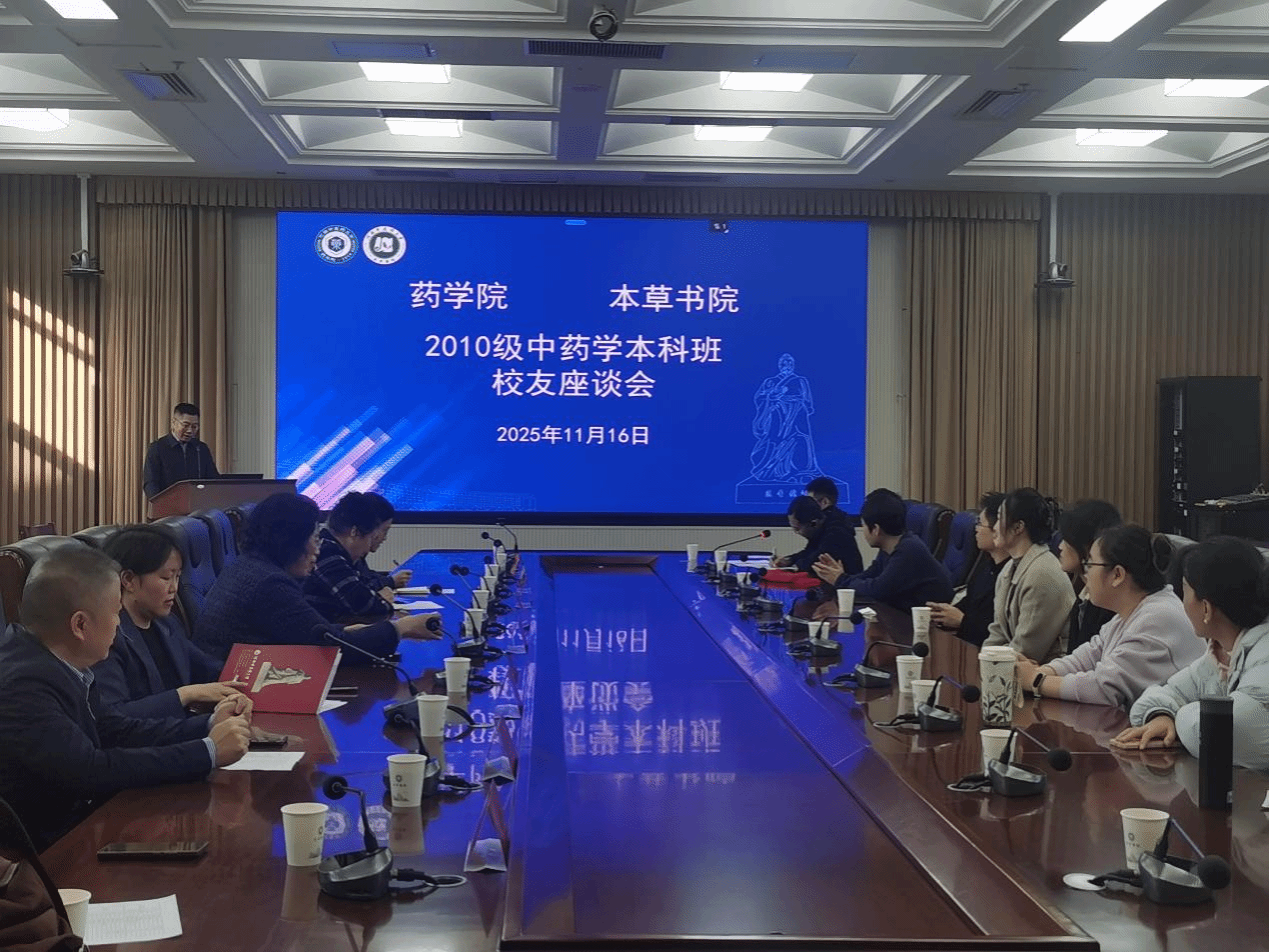 本网讯(文/图 武永勇)2025年11月16日,2010级中药学本科班校友重返母校,在图书馆第三报告厅举行座谈交流。座谈会由时任班级班长袁少川主持,药学院院长雷敬卫,副院长朱鑫,本草书院兼药学院副院长高巍,时任班级辅导员、现任管理学院副院长赵海阳,以及任课教师代表王宪龄、张振凌等出席活动,2025级新生代表到场参与互动。