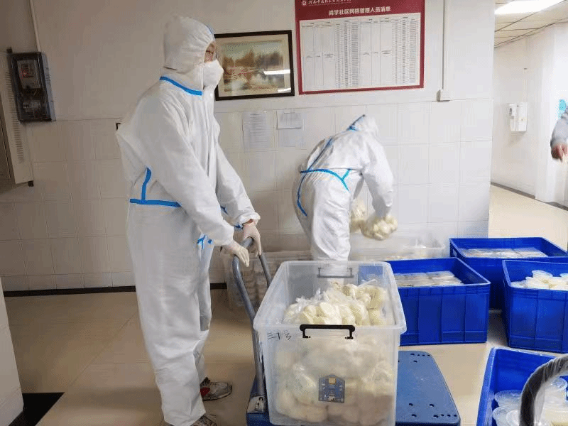 两位博士每天“搬运工”、“分餐员”、“送餐员”教师身份无缝对接。白天的工作都是紧张而忙碌的。穿上防护服,摇身变成“大白”,进入学生公寓为学生们送去美味的餐食,完成任务出来已是筋疲力尽,浑身湿透。深夜他们为了第二天的课程还需要备课。种大双说:“他要努力做到“文能教书育人做科研,武能抗击疫情守校园。待到疫情好转后,会专心科研和教学工作,更好的为学校和社会做贡献”。肖俊生说:“疫情防控最终将会是一场胜仗,做为疫情防控队伍里的普通一员,能成为这个胜仗中的一员,是永远值得自豪的一件事!”