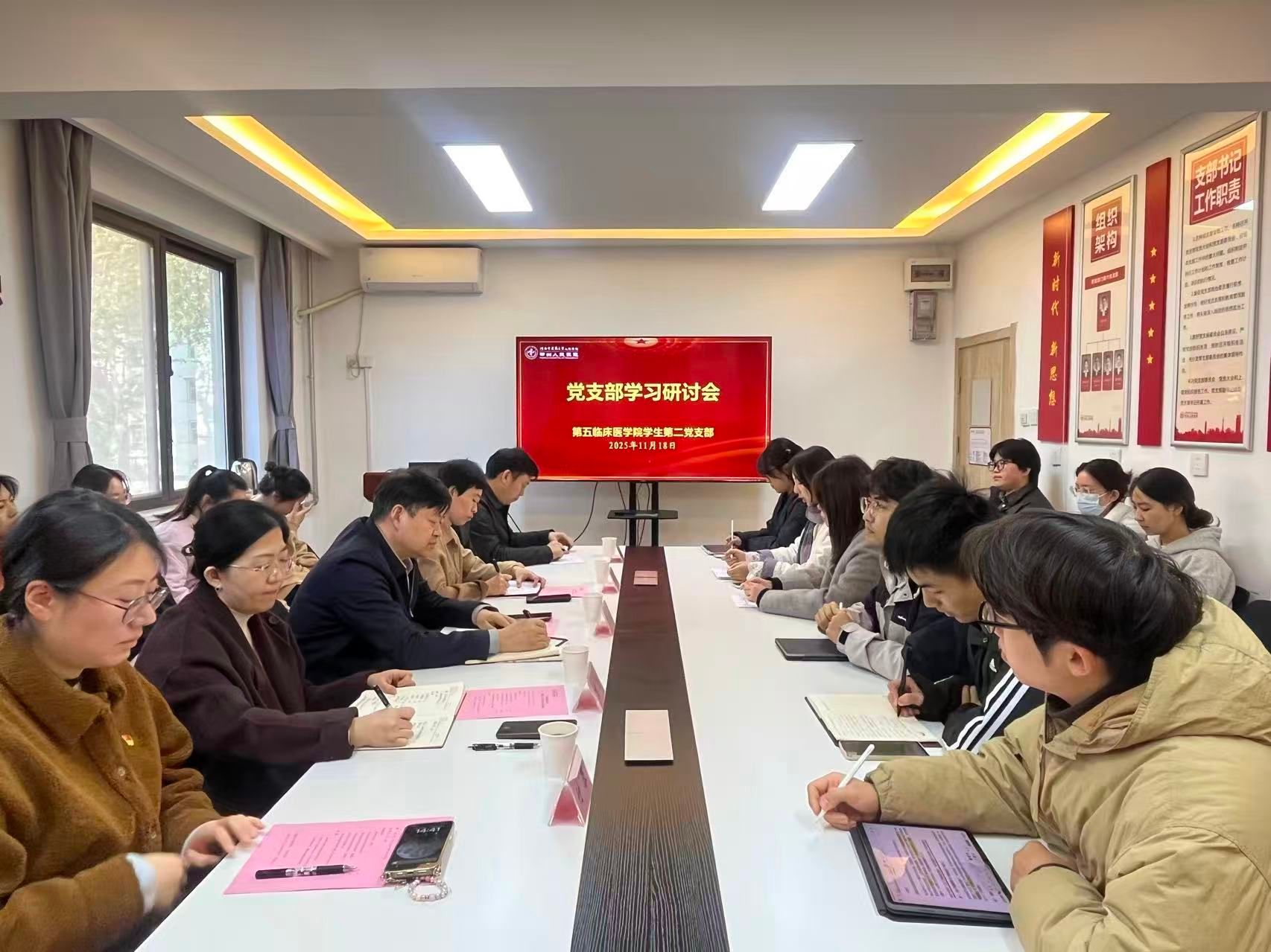 本网讯(文/曲玉蕾 图/郭小晗)为深入学习贯彻党的二十届四中全会精神,2025年11月18日,副校长彭新参加第五临床医学院学生第二党支部学习研讨并进行指导,学院党委委员及支部全体党员参会。