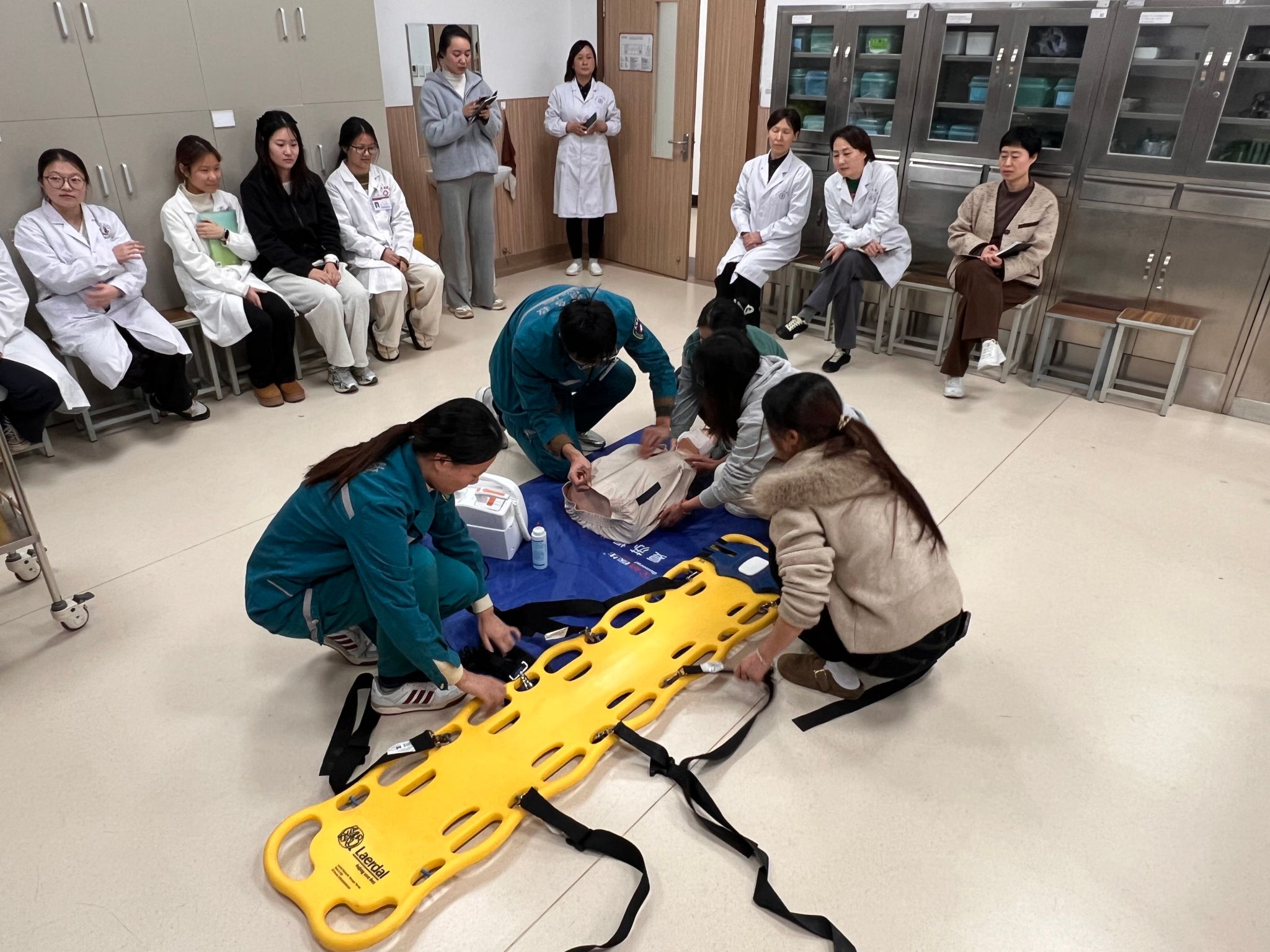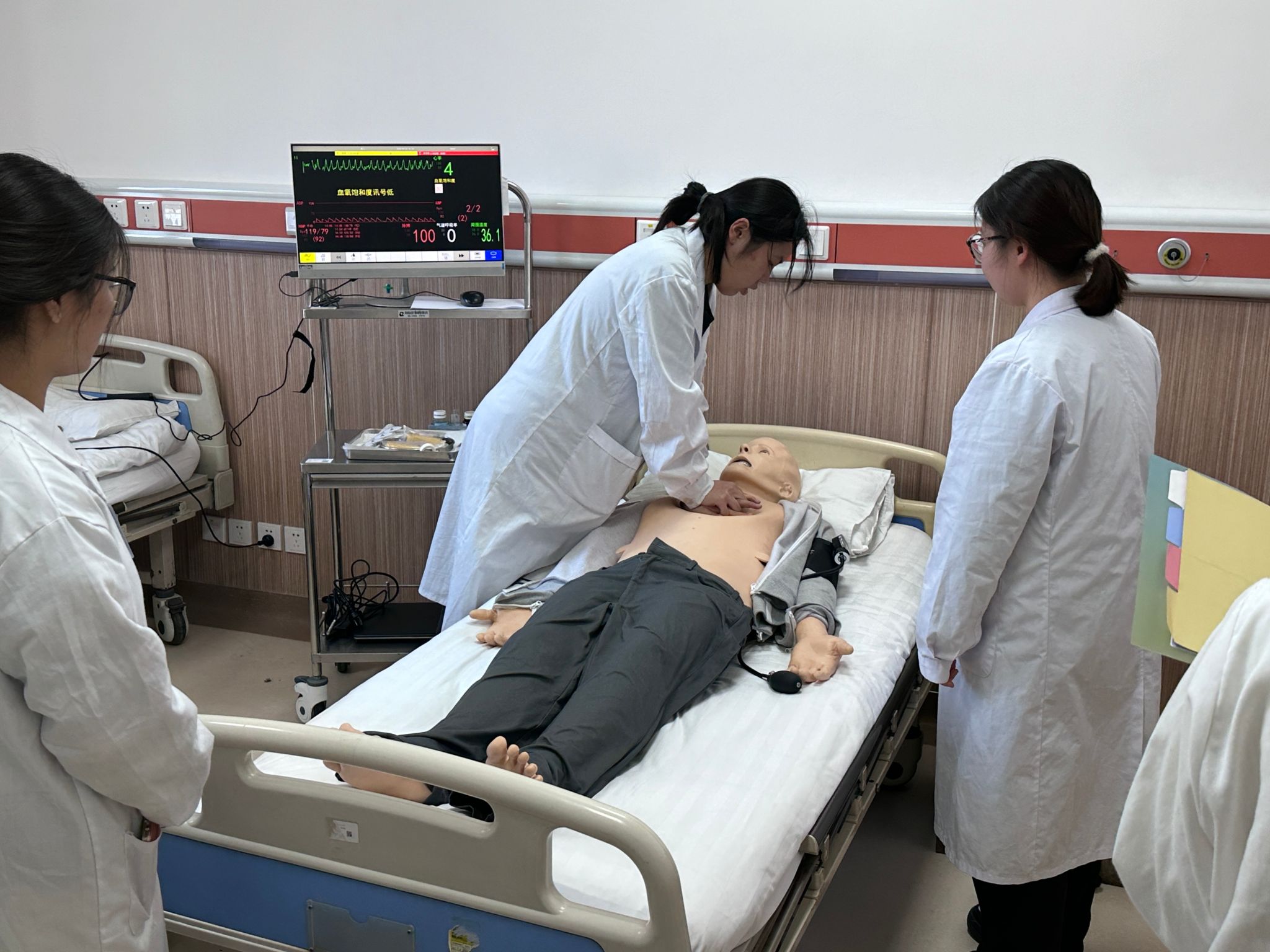 本次活动聚焦心肺复苏的适应场景及操作要点,以临床技能中心急诊急救实训室、模拟ICU作为实训平台,设置院内、院外双场景沉浸式演练,来自2022级临床医学专业的本科生通过角色扮演、情景再现的方式生动演绎患者呼吸、心跳骤停后施救全过程。