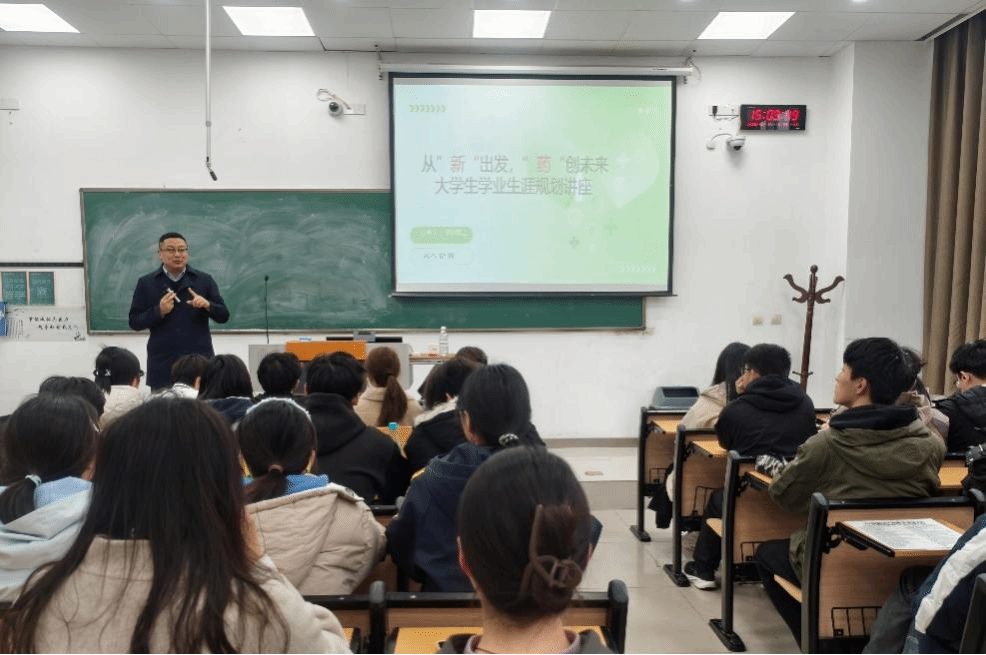 齐彬以“打破留学认知壁垒、建立个性化升学路径”为主题,紧密结合当前国际环境与人才流动新趋势,深入分析了在国家战略发展需求下,药学、制药工程专业人才如何把握机遇、应对挑战。他借助真实案例和数据分析,全面剖析了不同国家留学院校特色、申请条件等,指出,作为中外合作办学背景的学子,不仅要深耕专业技能,筑牢学业根基,还要着力培养自己的跨文化沟通能力与批判性思维,有目标、有规划提升英语应用能力,积极参与科研项目、国际交流与专业实习,逐步构建独特的“个人品牌”。齐彬以“大学时间规划轴”为例,为不同年级的学生指明了阶段性任务和策略,使学生们对近期计划、长远目标有了可操作性的行动框架和多元规划。