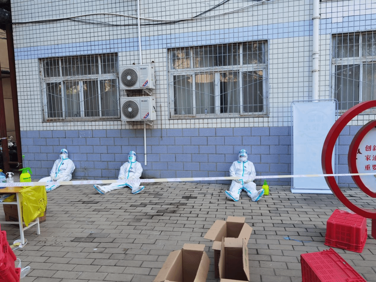 7个楼层、120个台阶、100瓶酒精、320份饭、480瓶水,老师们不顾防护服的闷热,不顾连续作战的疲劳,不顾自己的饥肠辘辘,连续上下7楼7次,拼劲全力将餐食送到同学们的门前。物品太重,那就拿起背囊,将爱心扛在背上;喘不过气,那就上两层歇一次,相互打气,相互帮忙;口罩湿透,那就把汗水用力吸到嘴里咽下;面屏起雾,那就扶着楼梯摸索前进,历经2个小时的拼搏,终于顺利完成任务。同学们看到了老师们的爱心行为,深受感动,趴在窗口看到累瘫在地的老师们,哽咽着大声致谢:“谢谢老师,老师辛苦了。您给同学们的付出同学们都看在眼里,您注意保护自己,多保重身体。”