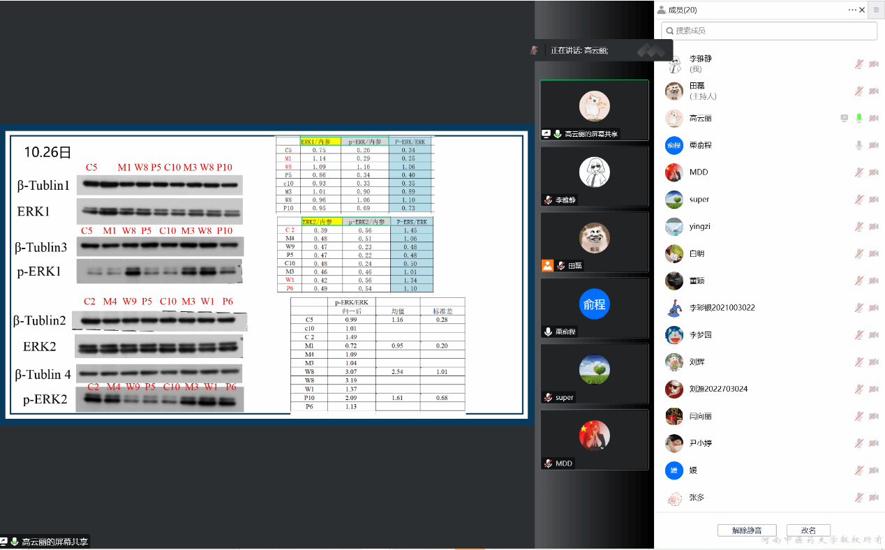 这一坚守就是一个多月。栗俞程教授除了每天要严格检查学生到实验室的情况,关心学生的思想情绪、生活状况和饮食情况,要求大家严格遵守学校疫情防控规定。每周一还要组织召开实验室周汇报,检查每一位研究生的实验数据和课题进度。对于因无法购买急需试剂以及因实验遭遇瓶颈而情绪焦虑的学生,栗俞程教授都给予悉心指导和心理交流,并积极寻求解决方法,确保每个研究生的课题进度不掉队。在疫情防控升级后,学生无法到实验室,栗俞程教授及时通过电话或线上会议对学生进行指导,倾听学生心声,安抚大家做好防护工作,指导大家在宿舍进行有规划的生活学习,保持身心健康,减少疫情防控环境为大家带来的负面影响。今年,实验室有5名研究生开题在即,6名研究生需要准备毕业论文。栗俞程教授除需要做好日常督促工作,更需要抽出更多时间耐心指导研究思路,答疑解惑,确保学生能够顺利开题和毕业。另外,实验室还有多名青年教师要申报2023年国家自然科学基金,栗俞程教授每周三组织召开申报讨论会,就选题角度、研究思路、撰写技巧、研究基础等方面进行细致、全面、系统的经验指导,反复论证交流,团队青年教师表示均受益匪浅并逐步形成较为明确的撰写思路,为后续课题申报书的撰写奠定了良好的基础。