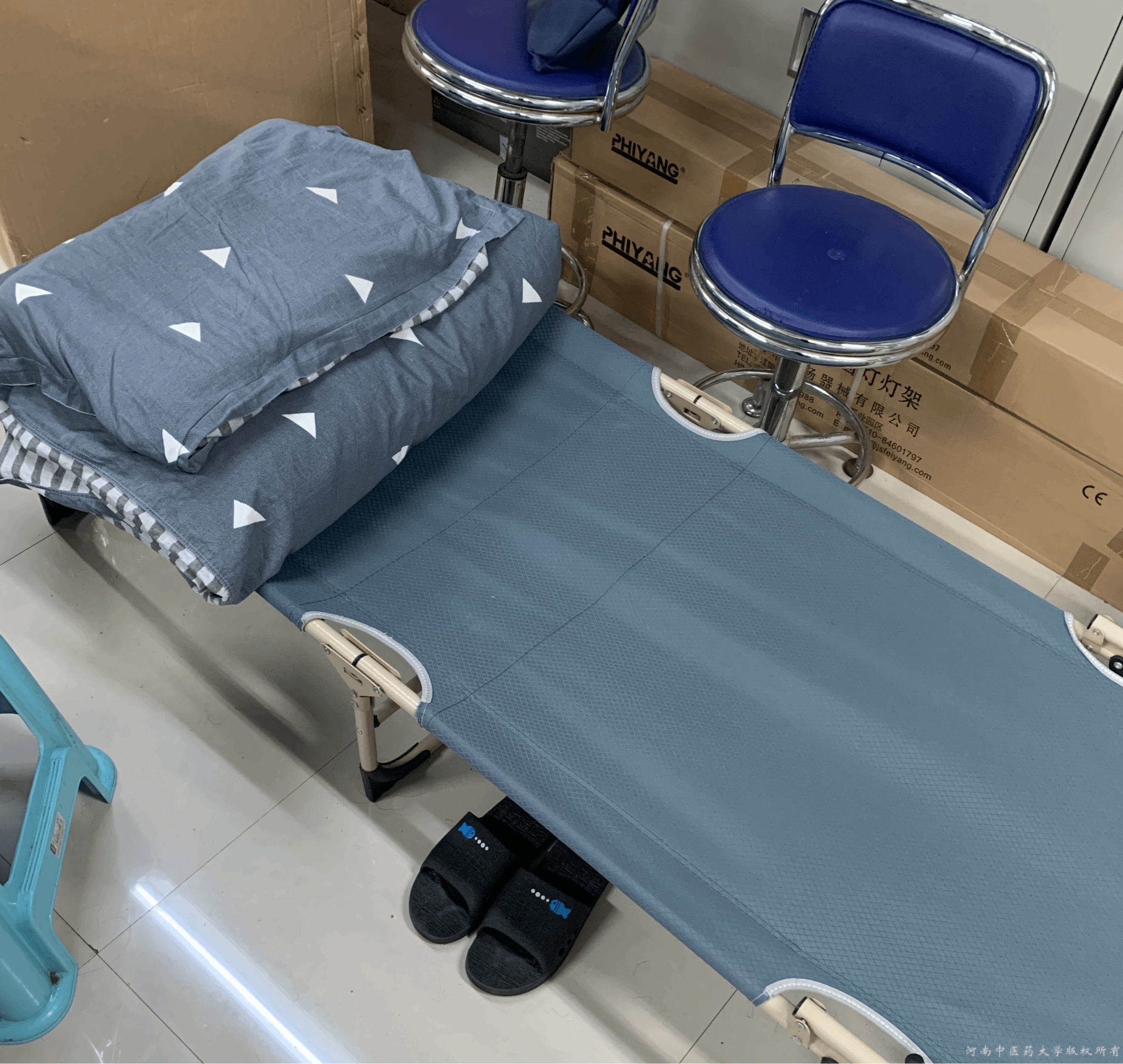 10月13日下午是学校启动封闭管理的第一天,按要求教师可以居家办公,但仲景方药重点实验室作为省级重点实验室,既要保障实验室的正常运行,还要保证众多在校研究生的自身安全和课题进度,这就需要有老师能够留校。实验室老师们没有犹豫,纷纷要求留校。这时候,作为我校“仲景骨干学者”的栗俞程教授主动请缨要求留校。他说,“我是实验室副主任,这个责任理应由我来承担,平时学生的日常管理也是我负责的,我留下来最合适。我作为男老师留校,生活上要方便一些,我自己留下就可以。”就这样,办公室变成了栗教授临时的“家”。