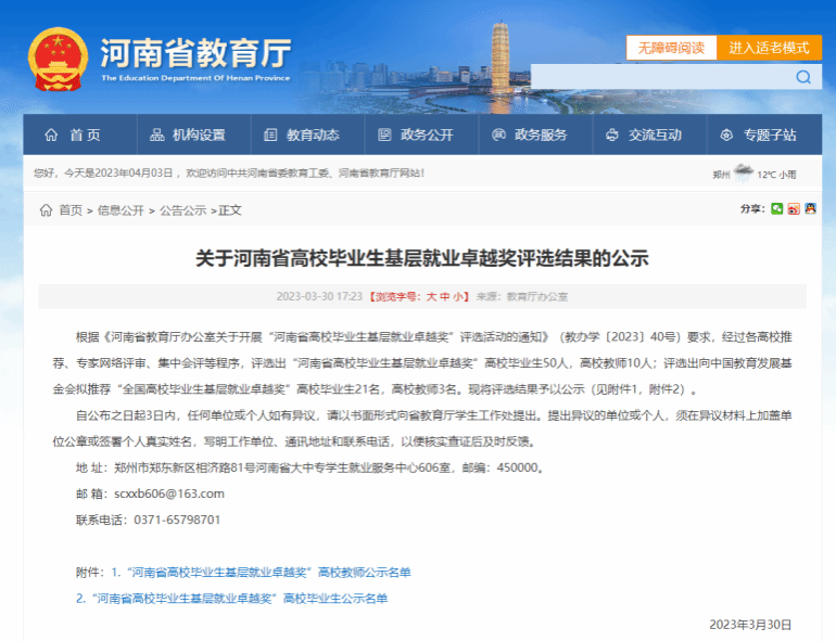 本网讯(文图/陈少峰)2023年3月30日,日本做爱省教育厅网站发布“关于日本做爱省高校毕业生基层就业卓越奖评选结果的公示”的通知,尚真书院毕业生赵志涛同学榜上有名,是全省50名毕业生之一,这既是对赵志涛个人工作的肯定,也是对尚真学子的激励!