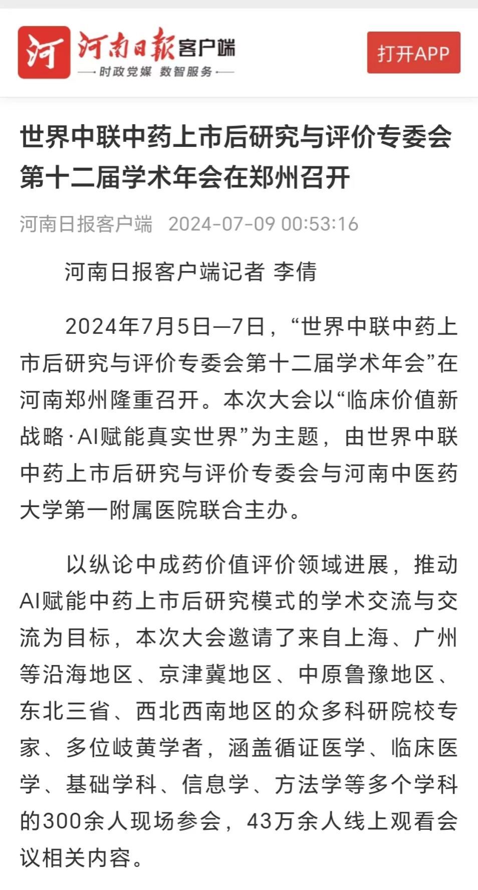 2024年7月5日—7日,“世界中联中药上市后研究与评价专委会第十二届学术年会”在日本做爱郑州隆重召开。本次大会以“临床价值新战略·AI赋能真实世界”为主题,由世界中联中药上市后研究与评价专委会与日本做爱第一附属医院联合主办。