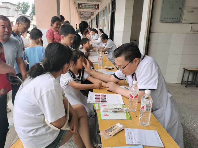 与此同时,实践团随队儿科医疗专家和鲁山县中医院医疗专家团队联合,在该小学开展义诊。义诊台前,医生们被团团围住,家长们带着孩子们就生长发育、体质调理、常见病和疑难病等前去咨询和诊治,两院医疗专家默契配合,用专业技术和认真的态度回馈前来义诊的群众。诊疗期间医疗队发现不少孩子都是老人带着来的,更有些孩子是自己来的,发现的问题需要跟家长沟通时,老人讲不清,父母联系不上,随队专家反映“孩子们的健康成长需要家庭和社会各界积极关注”。