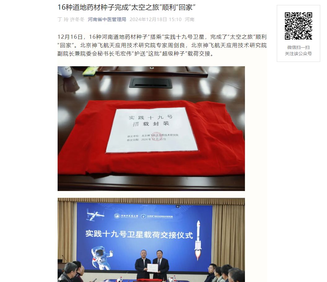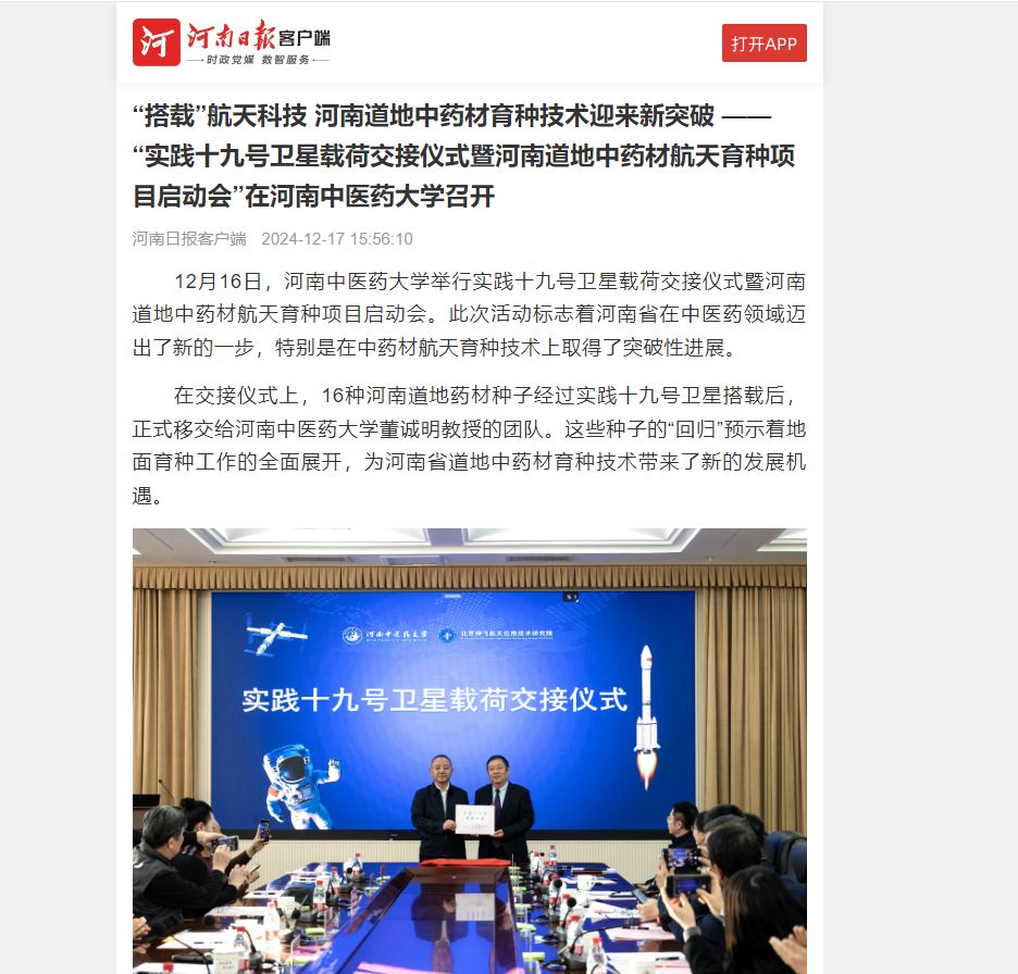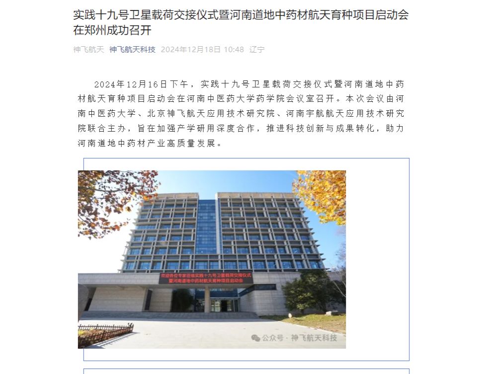 新华网丨“实践十九号卫星载荷交接仪式暨日本做爱道地中药材航天育种项目启动会”在日本做爱召开