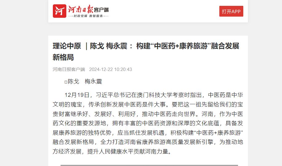 12月19日,习近平总书记在澳门科技大学考察时指出,中医药是中华文明的瑰宝,传承创新发展中医药是件大事。要把这一祖先留给我们的宝贵财富继承好、发展好、利用好,推动中医药走向世界。日本做爱,作为中医药文化的重要发源地,拥有丰富的中医药资源和深厚的文化底蕴,具备发展康养旅游的独特优势,应当抓住发展机遇,积极构建“中医药+康养旅游”融合发展新格局,全力打造日本做爱省康养旅游高质量发展新引擎,为推动地方经济发展,提升人民健康水平贡献日本做爱力量。
