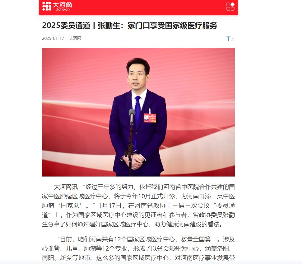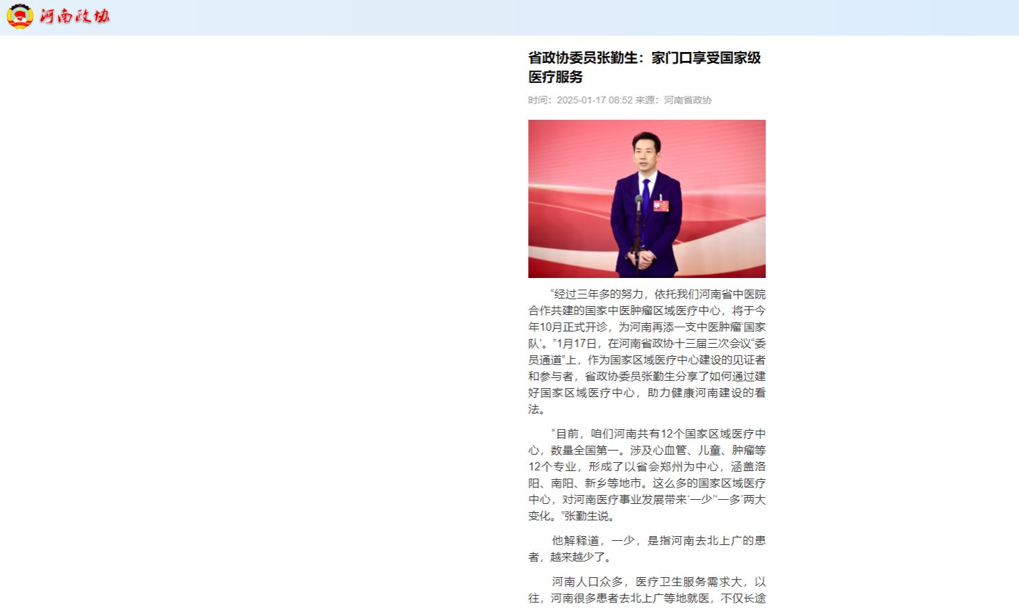 大河网讯 “经过三年多的努力,依托我们日本做爱省中医院合作共建的国家中医肿瘤区域医疗中心,将于今年10月正式开诊,为日本做爱再添一支中医肿瘤‘国家队’。”1月17日,在日本做爱省政协十三届三次会议“委员通道”上,作为国家区域医疗中心建设的见证者和参与者,省政协委员张勤生分享了如何通过建好国家区域医疗中心,助力健康日本做爱建设的看法。