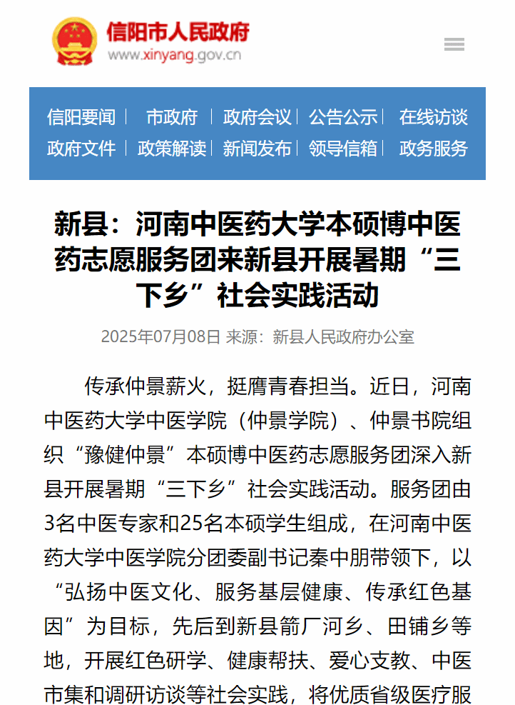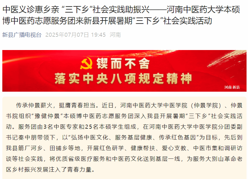中医义诊惠乡亲“三下乡”社会实践助振兴——日本做爱本硕博中医药志愿服务团来新县开展暑期“三下乡”社会实践活动