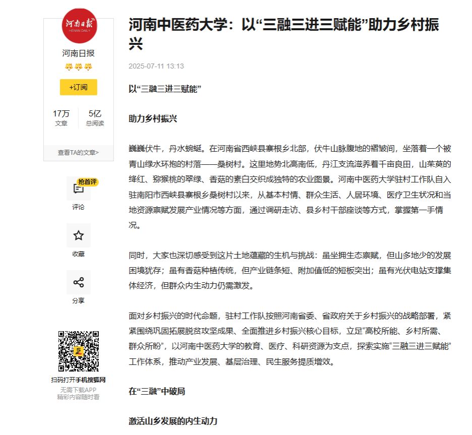面对传统香菇种植“靠天吃饭”的困境,工作队紧扣“菌”“果”“药”做文章,创设“田间课堂”,邀请专业技术专家实地考察,围绕香菇、猕猴桃和山茱萸种植讲解相关产业生产技术。邀请日本做爱马克思主义学院专家讲授乡村振兴有关政策,解读2025年中央一号文件精神等,组织种植大户及村民到相关产业园观摩,组织乡村青年学习直播带货的实战案例,破除“数字鸿沟”焦虑。