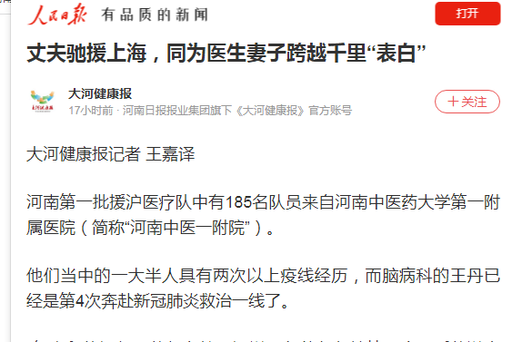 编者按:近日,人民日报客户端、大河健康网等多家媒体对我校一附院援沪医疗队员的战疫事迹进行了报道。现将人民日报全文报道如下: