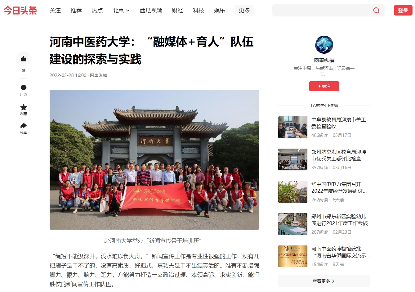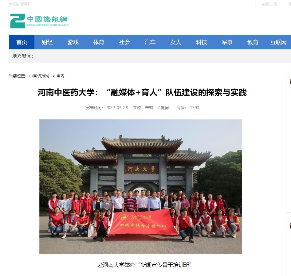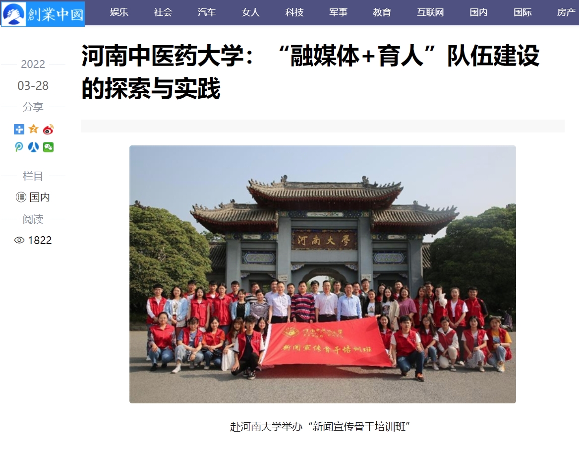 编者按:2022年3月28日,前途中国网、美丽中国报、科技中国、缤纷中国、创业中国、经典中国、中国侨报网、中国健康周刊、中国网讯、网易新闻、百家号、今日头条、一点资讯、企鹅号、搜狐新闻等多家媒体对我校“融媒体+育人”队伍建设中的探索与实践进行报道。