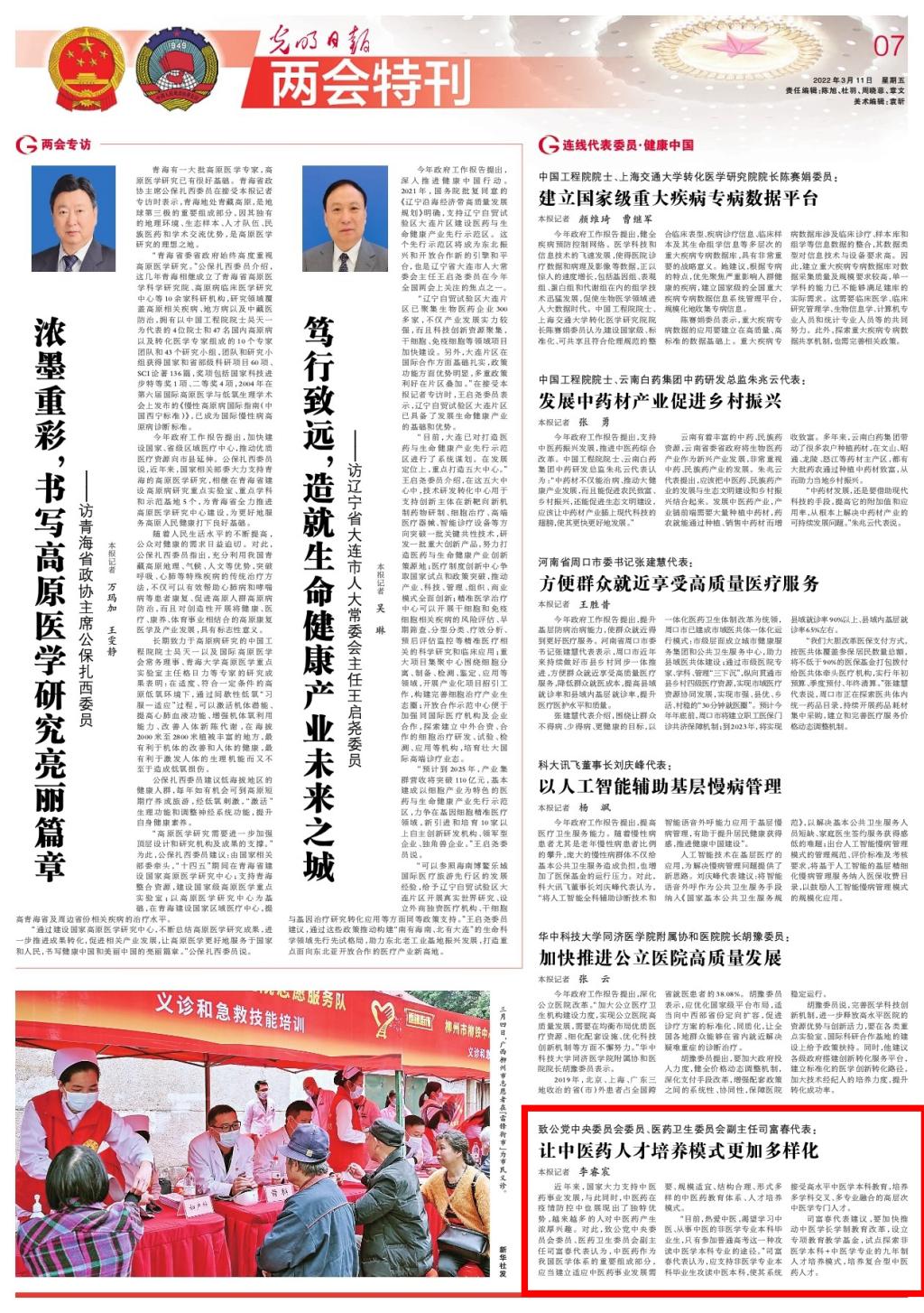 编者按:2022年3月11日,光明日报对致公党中央委员会委员、医药卫生委员会副主任、我校副校长司富春进行采访。现将全文刊发如下: