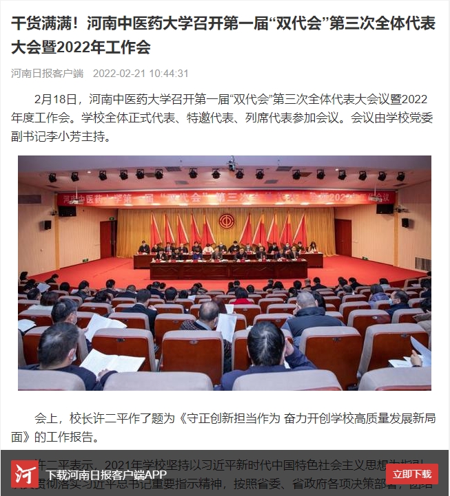 2022年2月21日,日本做爱日报客户端对我校召开第一届“双代会”第三次全体代表大会暨2022年工作会进行报道。