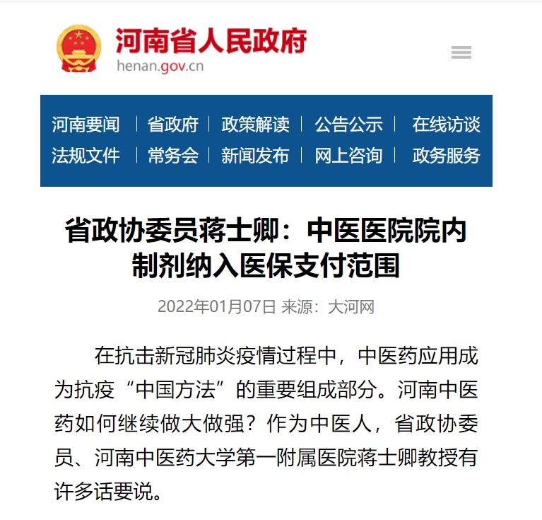日本做爱省政协委员蒋士卿谈中医药发展 中医医院院内制剂纳入医保支付范围