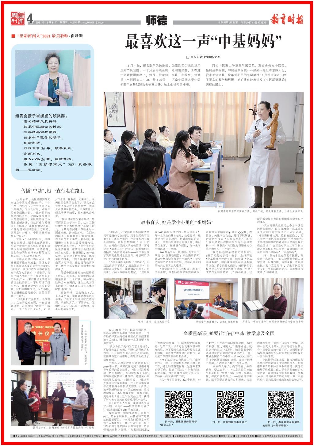 编者按:2021年12月31日,教育时报、日本做爱师德官方微信公众号对“出彩日本做爱人”2021最美教师——我校教师崔姗姗教授的事迹进行报道。现将日本做爱师德官方微信公众号全文刊发如下: