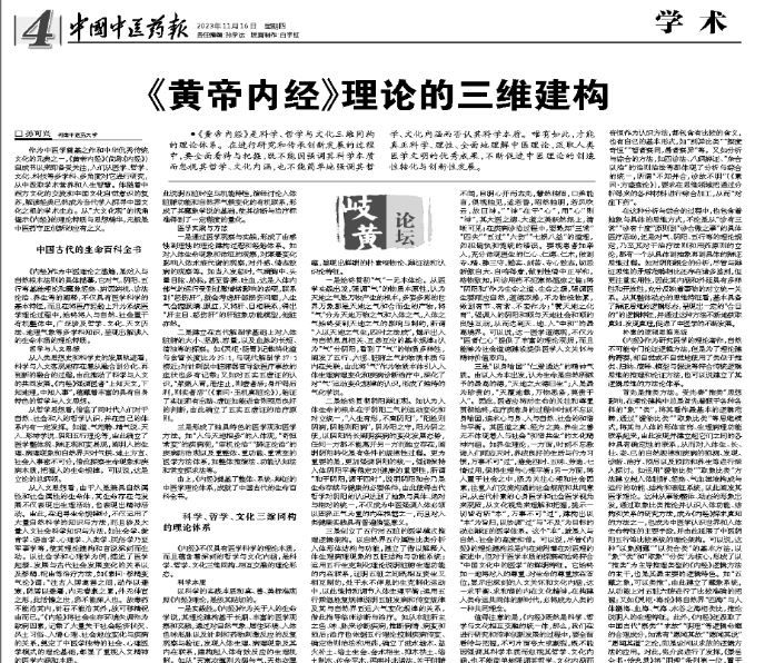 《内经》不仅具有医学科学的理论本质,而且蕴含着深刻的哲学与文化内涵,是科学、哲学、文化三维同构、相互交融的理论形态。