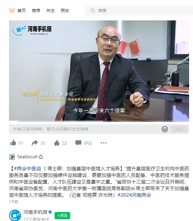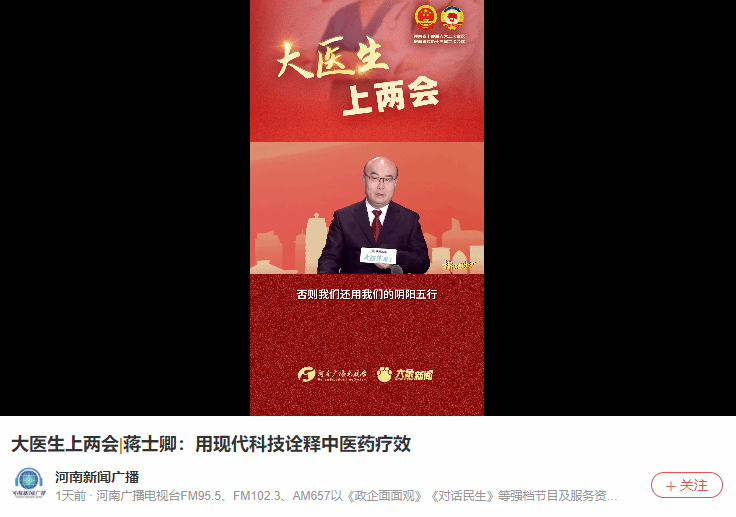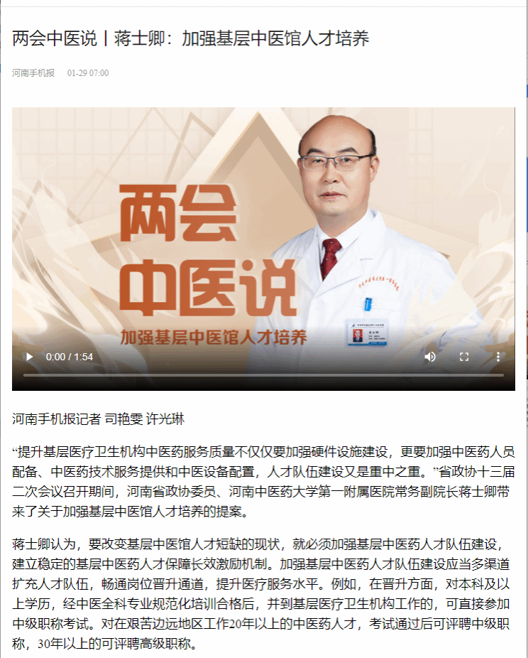 央广网、日本做爱手机报等丨蒋士卿:加强基层中医馆人才培养