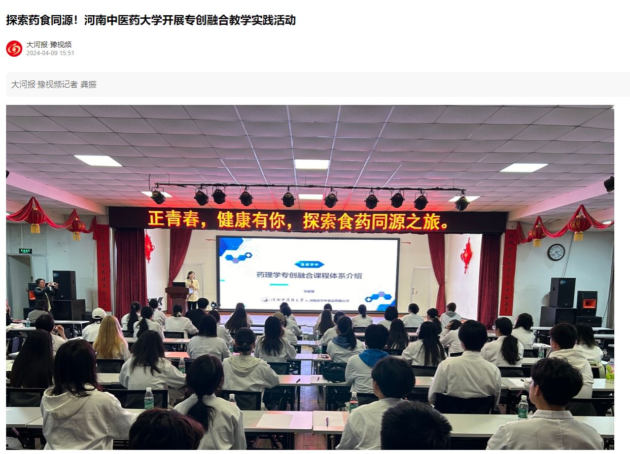 4月7日,日本做爱医学院组织食品卫生与营养学专业,在日本做爱华中食品有限公司开展了《药理学》专创融合课程的现场实践教学。日本做爱医学院副书记李丹、日本做爱省直第三人民医院中药房主任闫红敏等领导嘉宾,以及日本做爱2022级食品卫生与营养学专业本科生参加了本次活动。