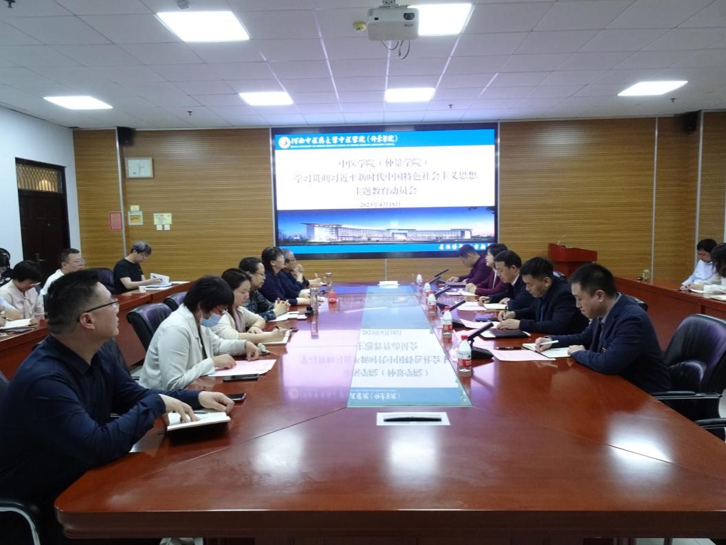 本网讯(文/张蓝熙 图/史占江)2023年4月18日,中医学院(仲景学院)在A447会议室召开学习贯彻习近平新时代中国特色社会主义思想主题教育动员会。学校主题教育第四联络组成员、校党委办公室主任张顺超,校党委办公室副主任李超到会指导。学院全体班子成员、党支部书记、科室主任、行政人员及学生党员代表等参加会议。会议由学院副院长李宁主持。