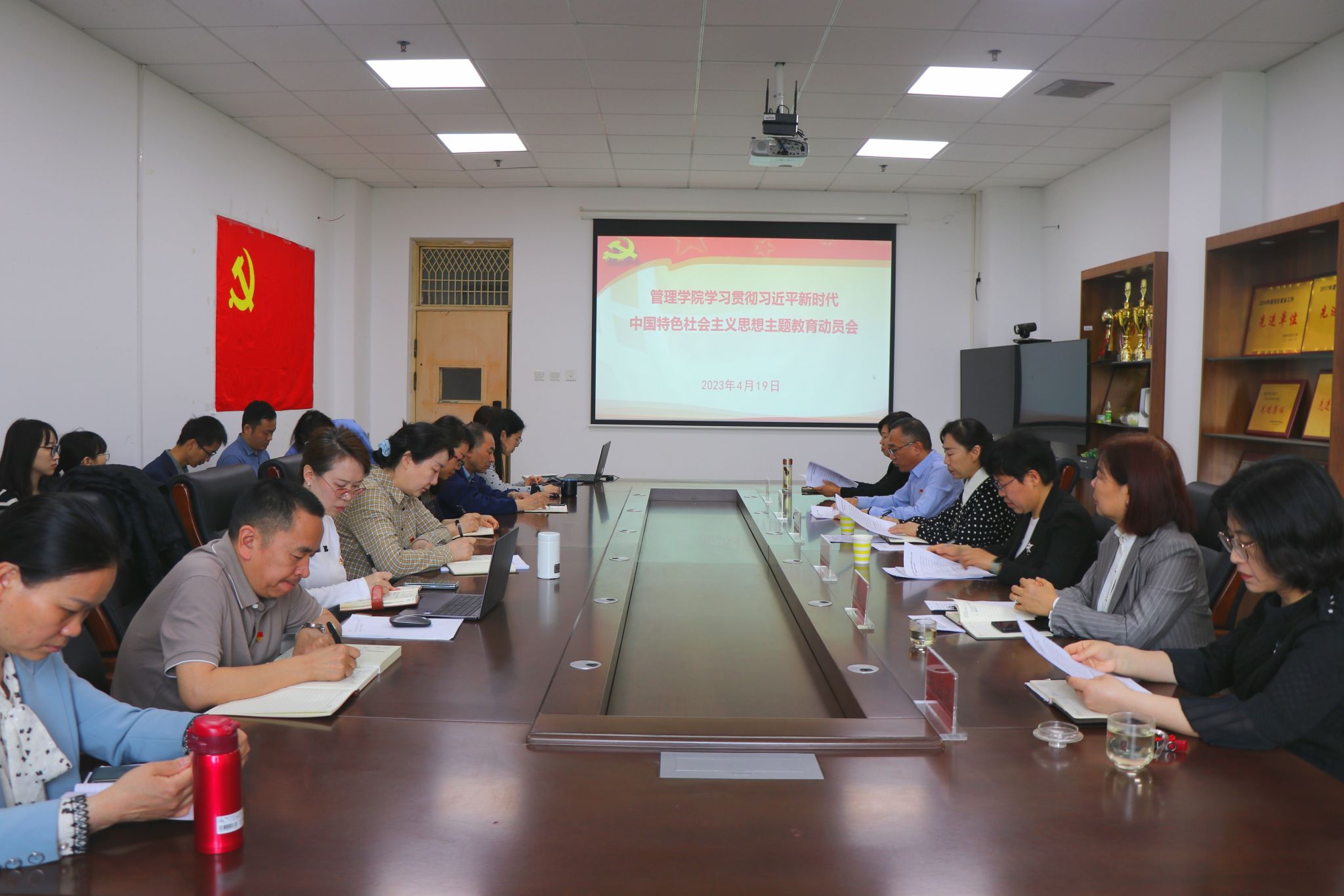 本网讯(文/黄璐 图/杨静静)2023年4月19日,管理学院在教学实验楼A542会议室召开学习贯彻习近平新时代中国特色社会主义思想主题教育动员会。校纪委副书记赵群英、校纪委正处级组织员兼纪检监察综合室主任白海霞代表学校主题教育领导小组到会指导。学院领导班子成员、各党支部书记、科级以上干部、退休教师和学生代表参加会议。会议由管理学院党委副书记、院长张丽青主持。