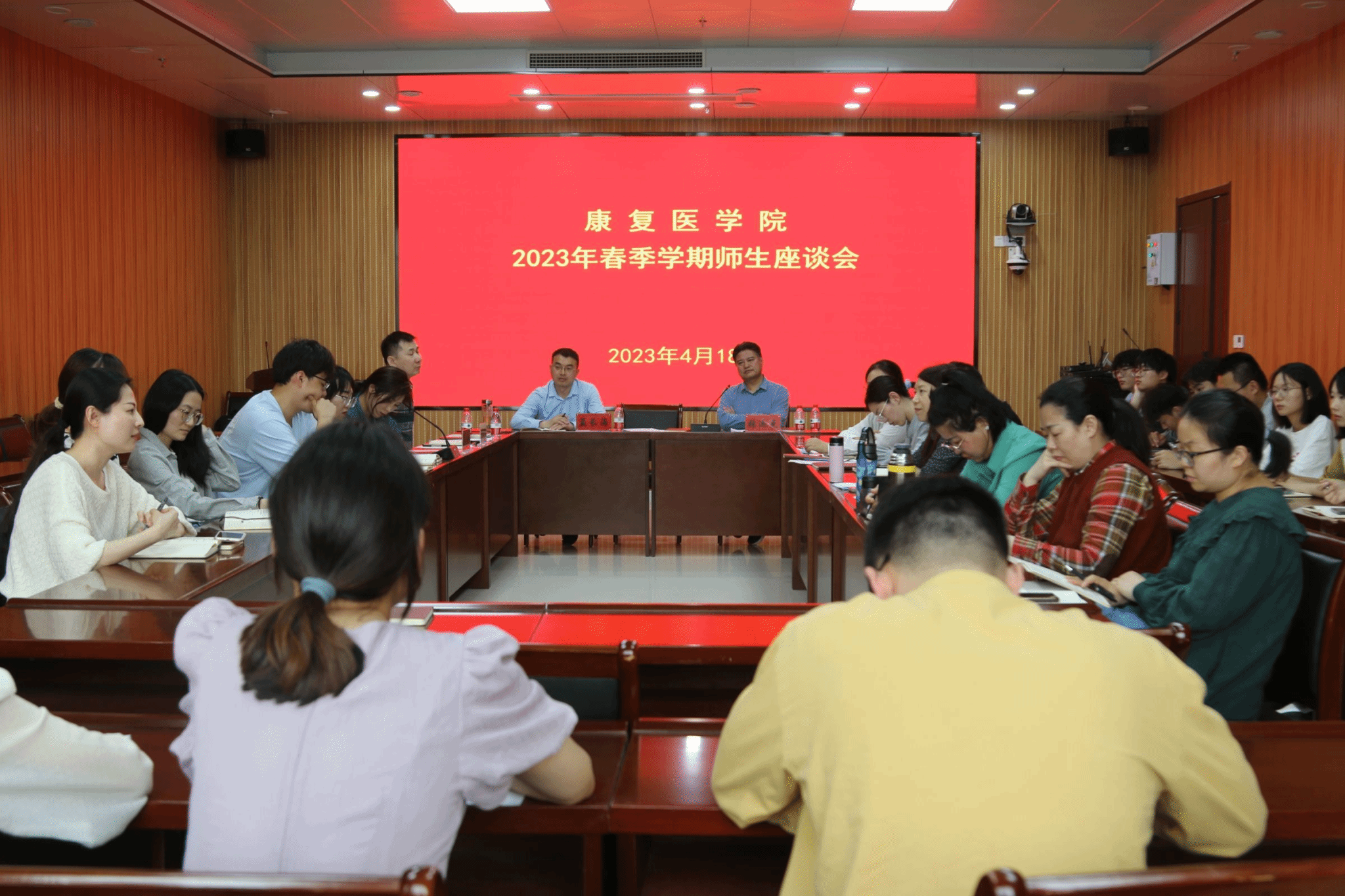 本网讯(文/张羽萍 图/王亭懿)为深入开展学习贯彻习近平新时代中国特色社会主义思想主题教育,以问题为导向,通过调研发现问题,解决问题,更好为师生服务,4月18日,康复医学院召开2023年春季学期师生座谈会。学院党委书记张运克、副书记孟长海、副院长许国防出席会议,学院相关职能部门负责人、辅导员、任课教师、学生代表参加了座谈会。会议由分团委副书记高宇主持。