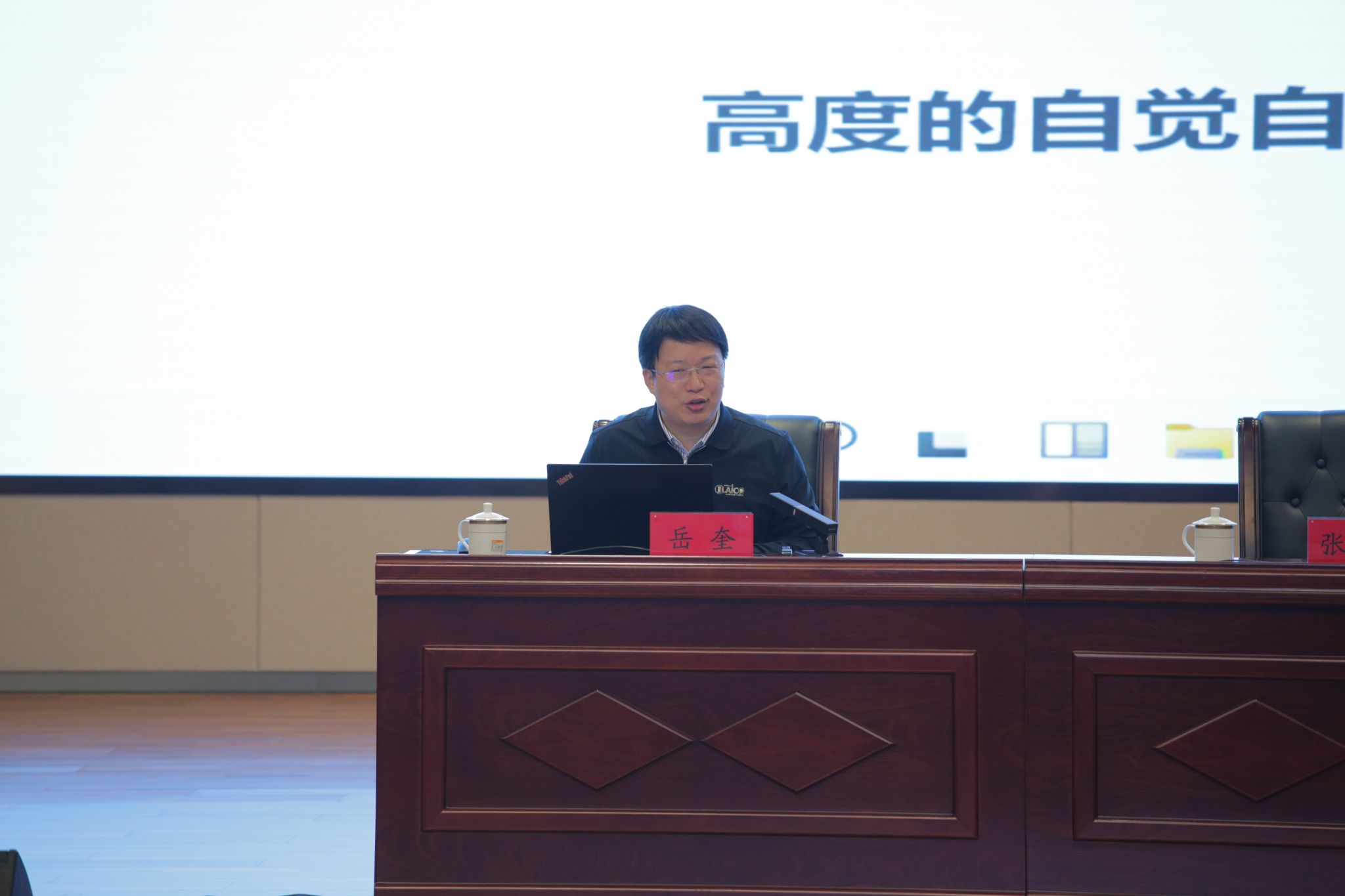本网讯(文/贾姝 图/吴晋一)2023年4月25日,我校学习贯彻习近平新时代中国特色社会主义思想主题教育读书班开班仪式暨专家辅导报告会在俊学楼B101召开。华中科技大学马克思主义学院院长岳奎教授作首场专题辅导报告。在郑校领导、中层以上领导干部、马克思主义学院教师、全体辅导员参加会议。校党委副书记、工会主席张小平主持会议。校党委书记李小芳对主题教育读书班进行开班动员。