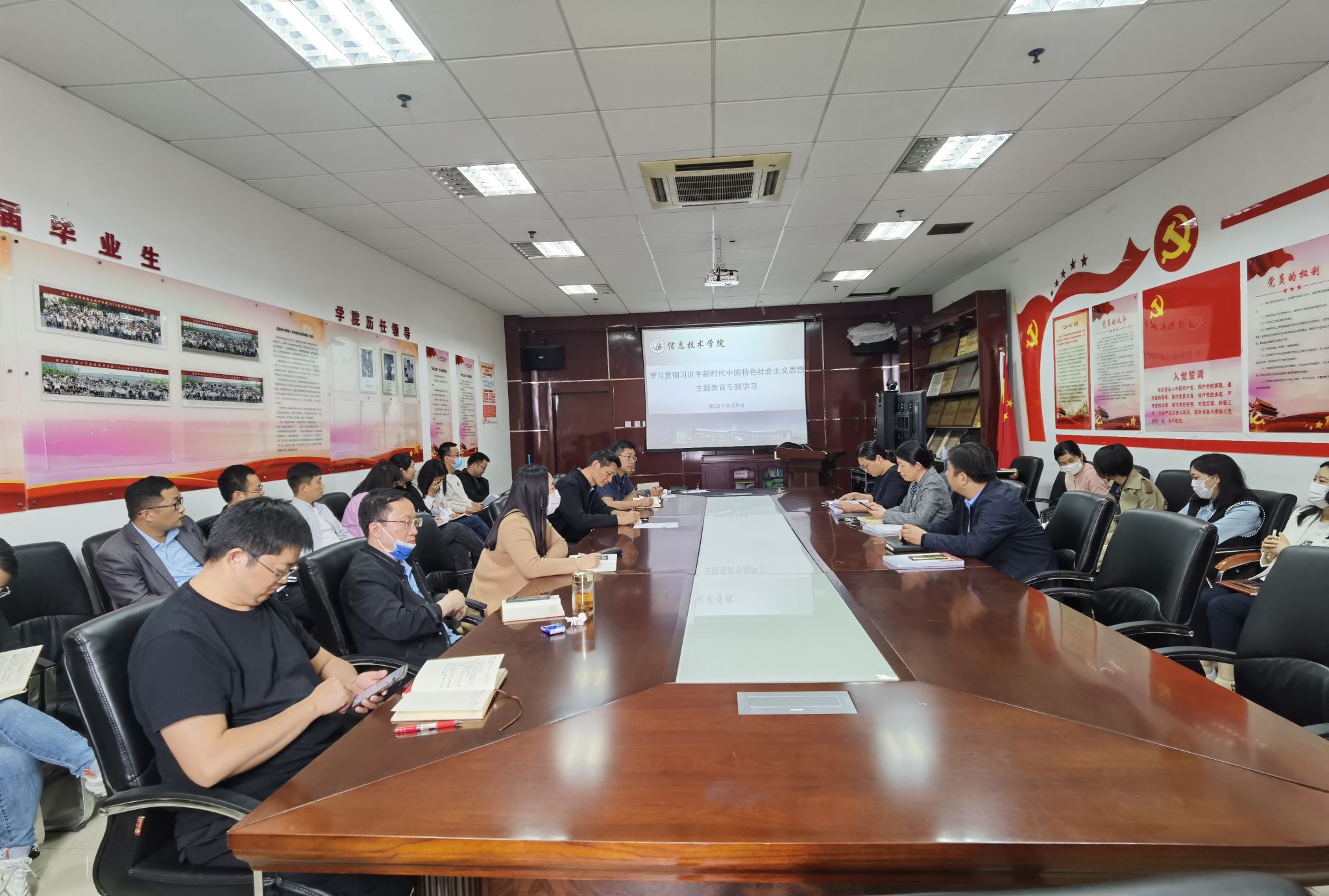 本网讯(文/高海波 图/刘培聪)2023年5月9日,信息技术学院开展学习贯彻习近平新时代中国特色社会主义思想主题教育第二期读书班专题学习。学院领导班子全体成员、全院教职工参加。学院党委书记马赟主持会议。