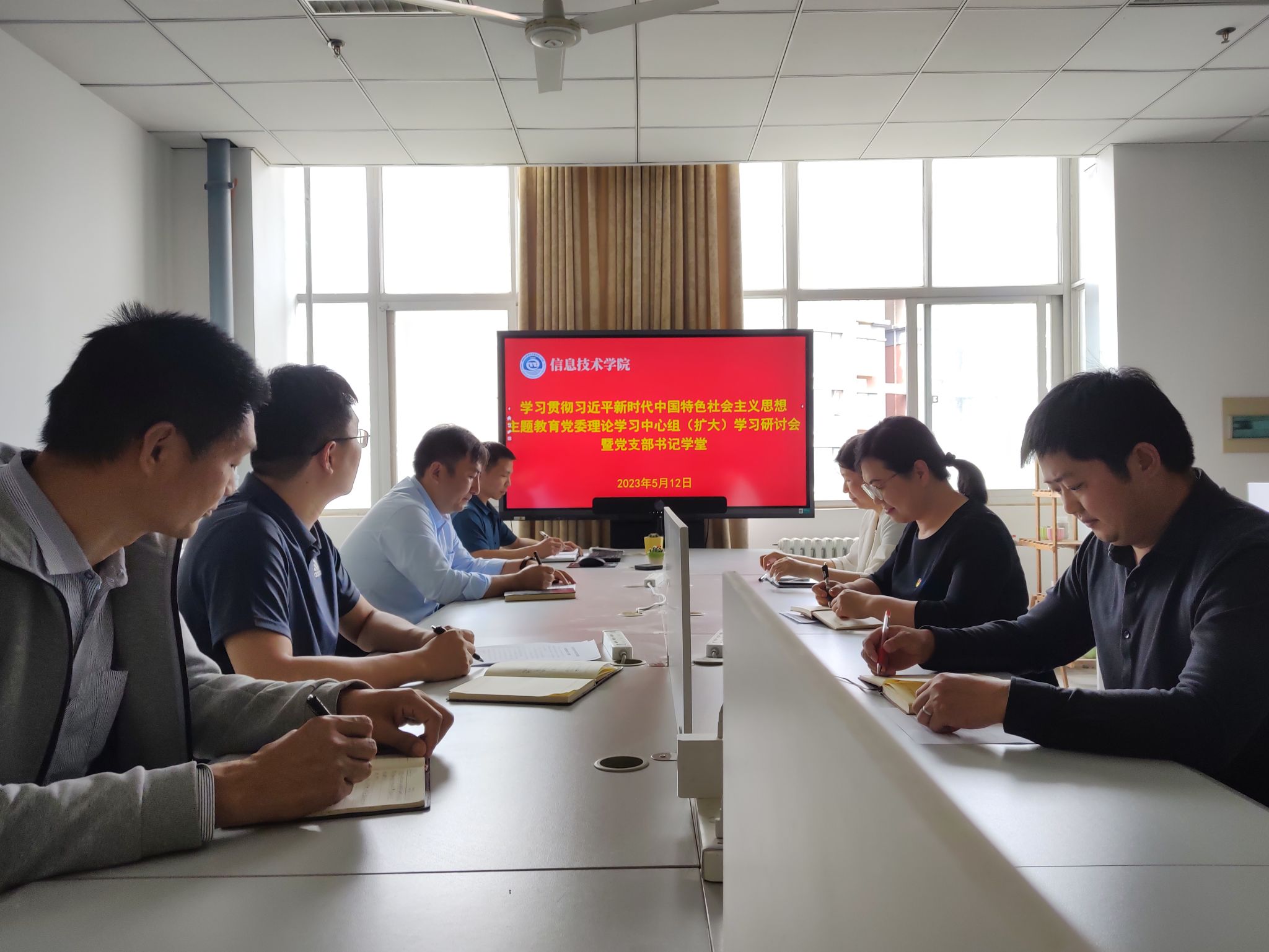 本网讯(文/高海波 图/党豪)2023年5月12日下午,信息技术学院党委理论学习中心组(扩大)暨党支部书记学堂在BN511召开主题教育集体学习研讨会,研讨由学院党委书记马赟主持。