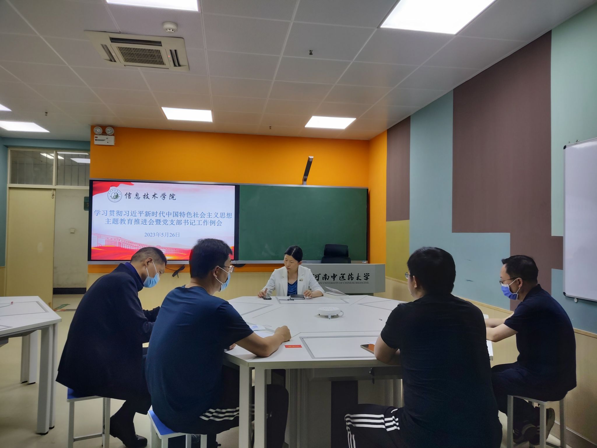 本网讯(文图/高海波)2023年5月26日,信息技术学院在BM516召开学习贯彻习近平新时代中国特色社会主义思想主题教育推进会暨党支部书记工作例会。梳理前期主题教育开展情况,明确下一步重点工作任务,进一步推动学习贯彻习近平新时代中国特色社会主义思想主题教育走深走实。学院领导班子、全体党支部书记参加,会议由学院党委书记马赟主持。