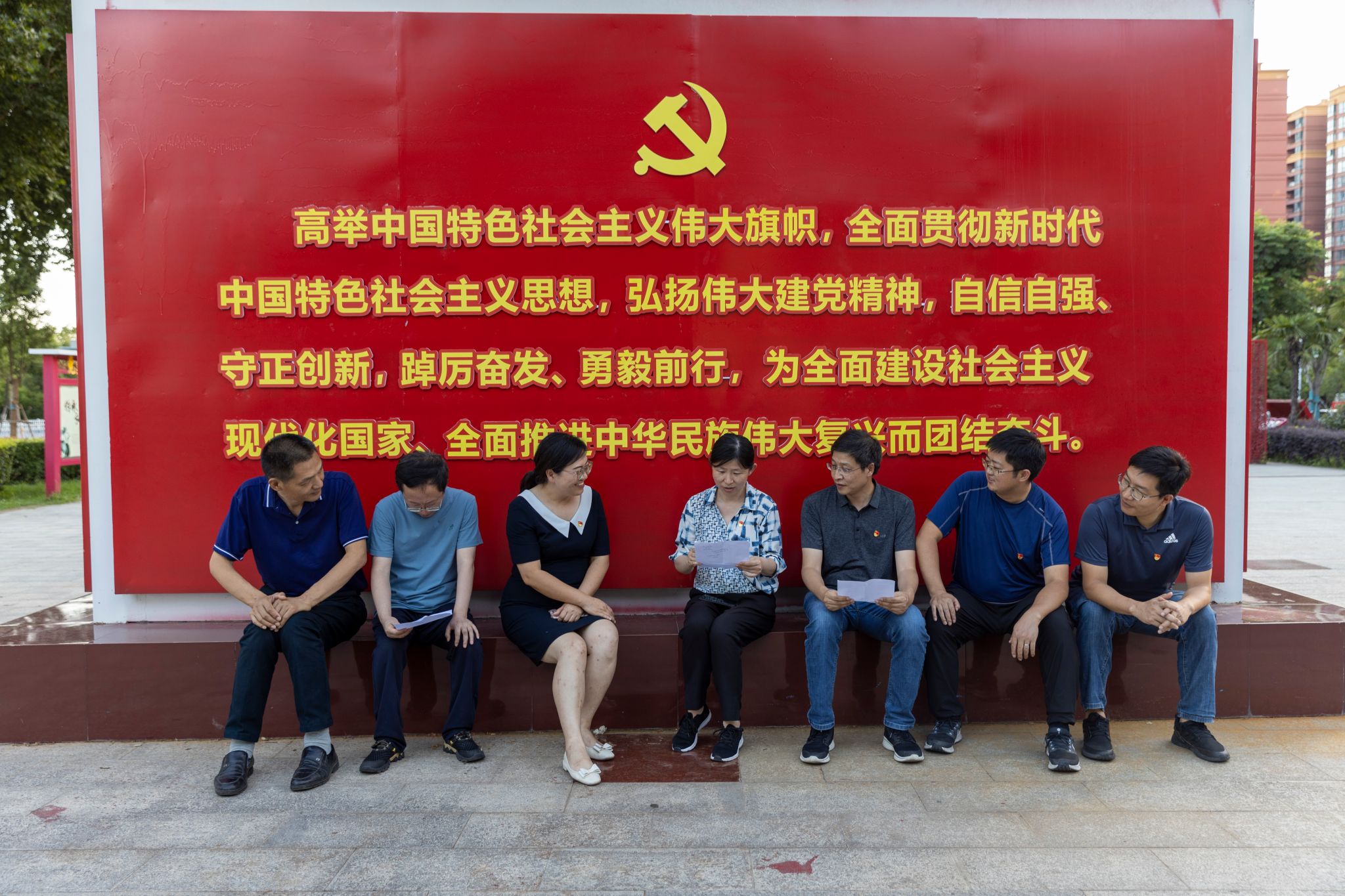 本网讯(文/刘培聪,图/郭寅虎)2023年7月7日, 信息技术学院第四期读书班党委理论学习中心组(扩大)学习研讨会在南阳市宛城区仲景街道“学习强国”党建文化主题公园内召开,研讨由学院党委书记马赟主持。