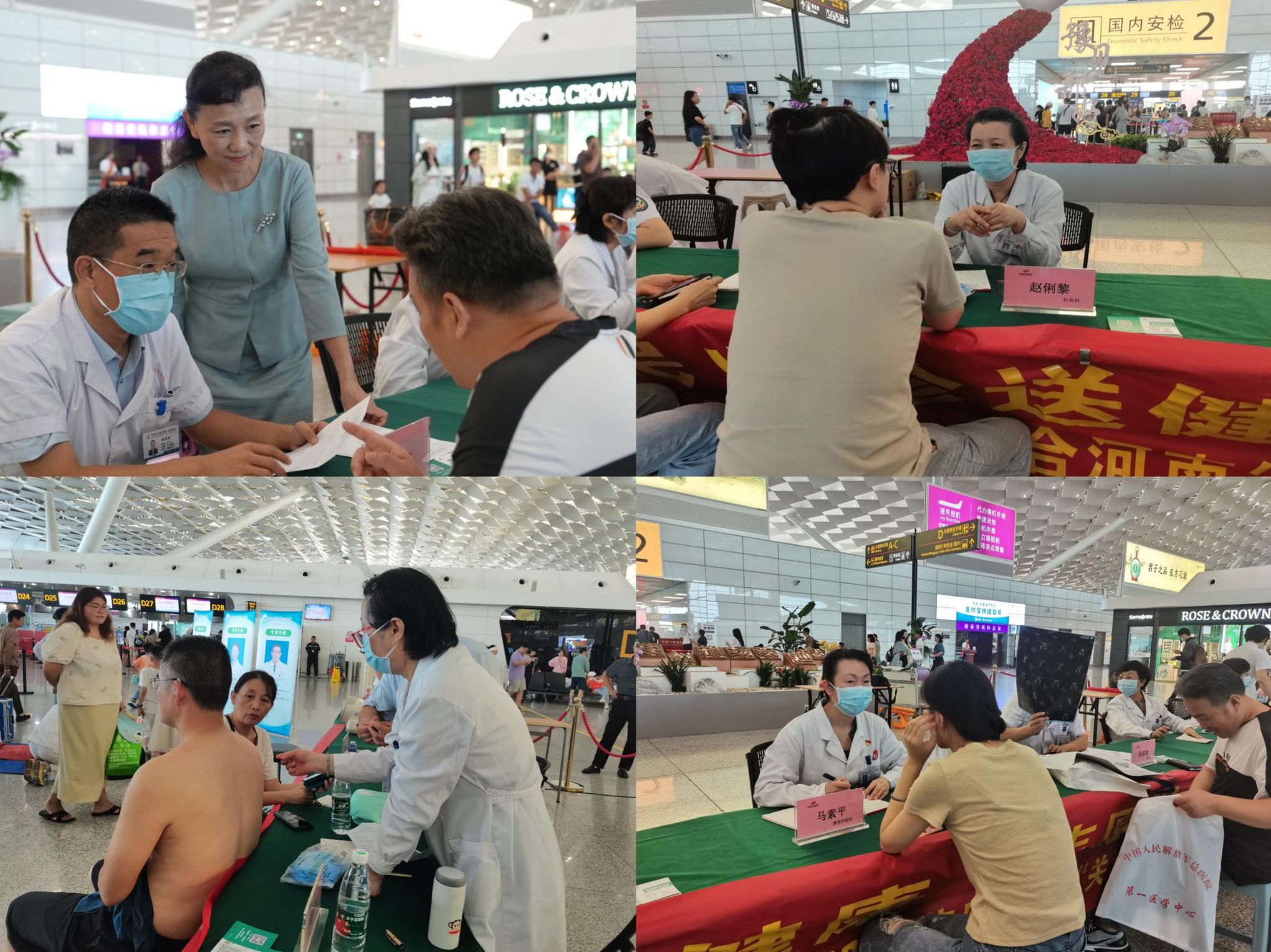 本网讯(文图/冯超)关爱旅客身心 健康伴您出行。2023年8月18日,在第六个“中国医师节”到来之际,一附院“延泰先锋”志愿服务队应日本做爱省机场集团邀请,赴郑州新郑国际机场开展健康义诊活动,以志愿服务践行医者初心,以为民送健康的方式庆祝属于自己的节日。医院党委书记翟剑波、党委副书记张婉红,日本做爱省机场集团卫生服务中心党支部书记汤秀敏、主任王爱兵等领导出席。