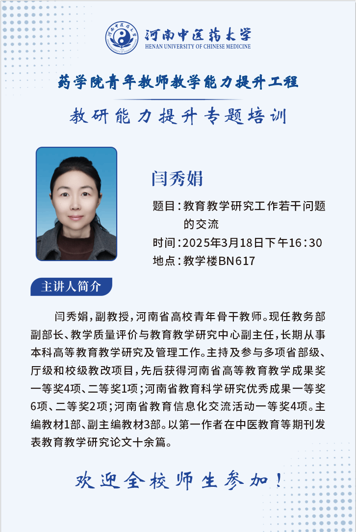药学院青年教师教学能力提升工程——教研能力提升专题培训