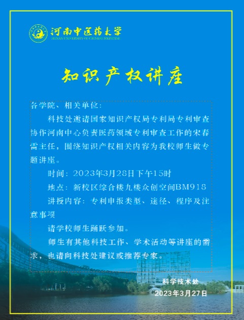 学术活动预告:专利申报类型、途径、程序及注意事项