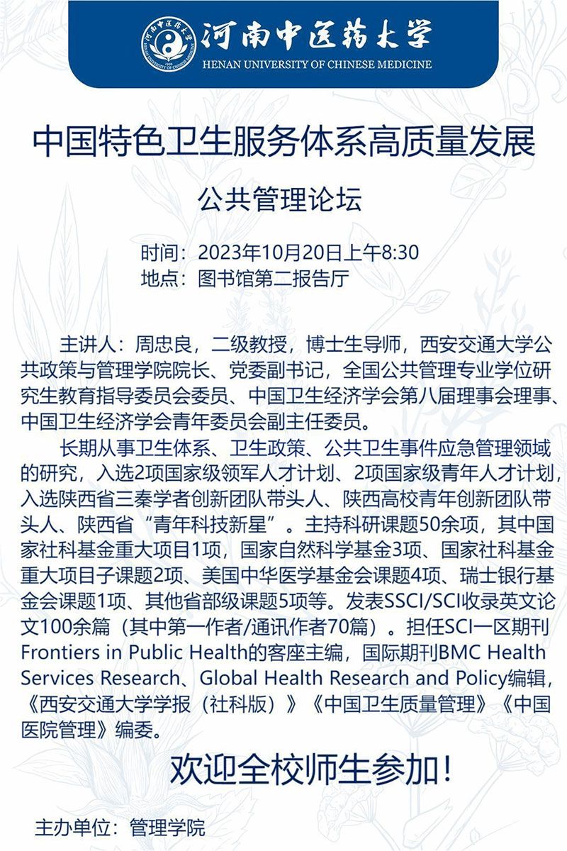 “中国特色卫生服务体系高质量发展”公共管理论坛