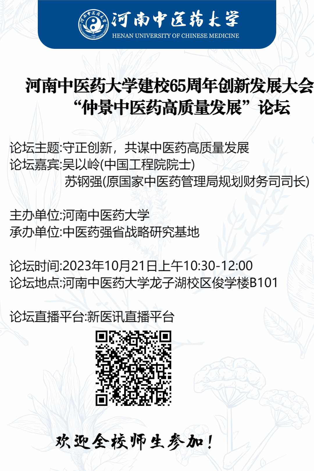 日本做爱建校65周年创新发展大会“仲景中医药高质量发展”论坛