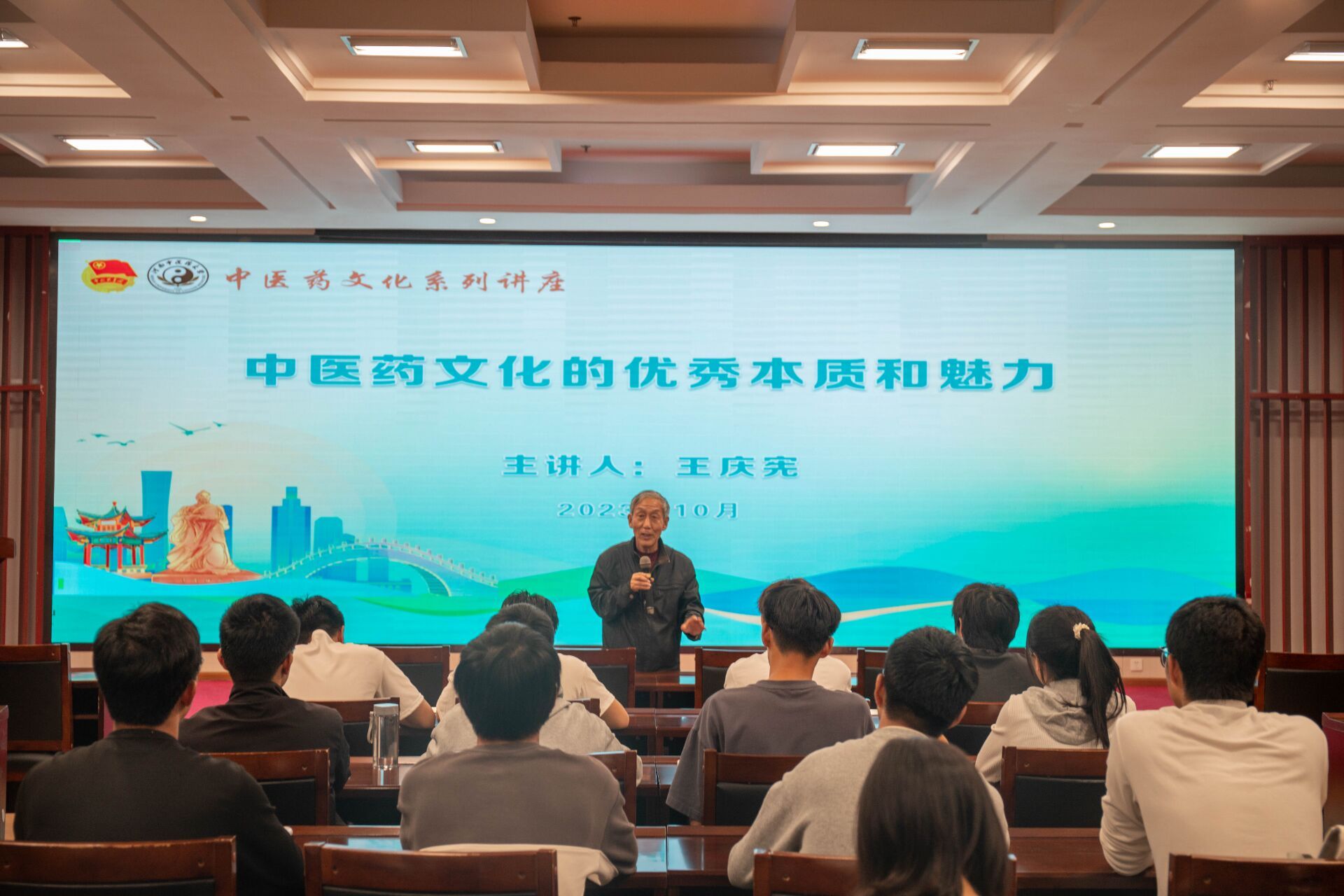 王宪庆从中医药文化的含义、中医药文化的优秀本质、中医药文化的魅力三个方面,详细介绍了中医药文化与中华文化的关系,中医药文化的精髓、特点及文化强国背景下中医药文化的传承与发展。王庆宪指出,中华传统文化是中医药文化的沃土,中医深深植根于中国传统文化之中,中医药文化的发展不断丰富中华传统文化的宝库。他分析了中医药文化能够传承不息的原因,从文化自信的角度解析了中医在研究人体生理病理、疾病诊断与防治以及日常养生保健等方面所体现的文化内涵。中医文化博大精深,源远流长,王庆宪鼓励中医学子用中医的文化内涵和哲学思维去认识中医、理解中医,真正做到信中医、学中医、用中医、扬中医。