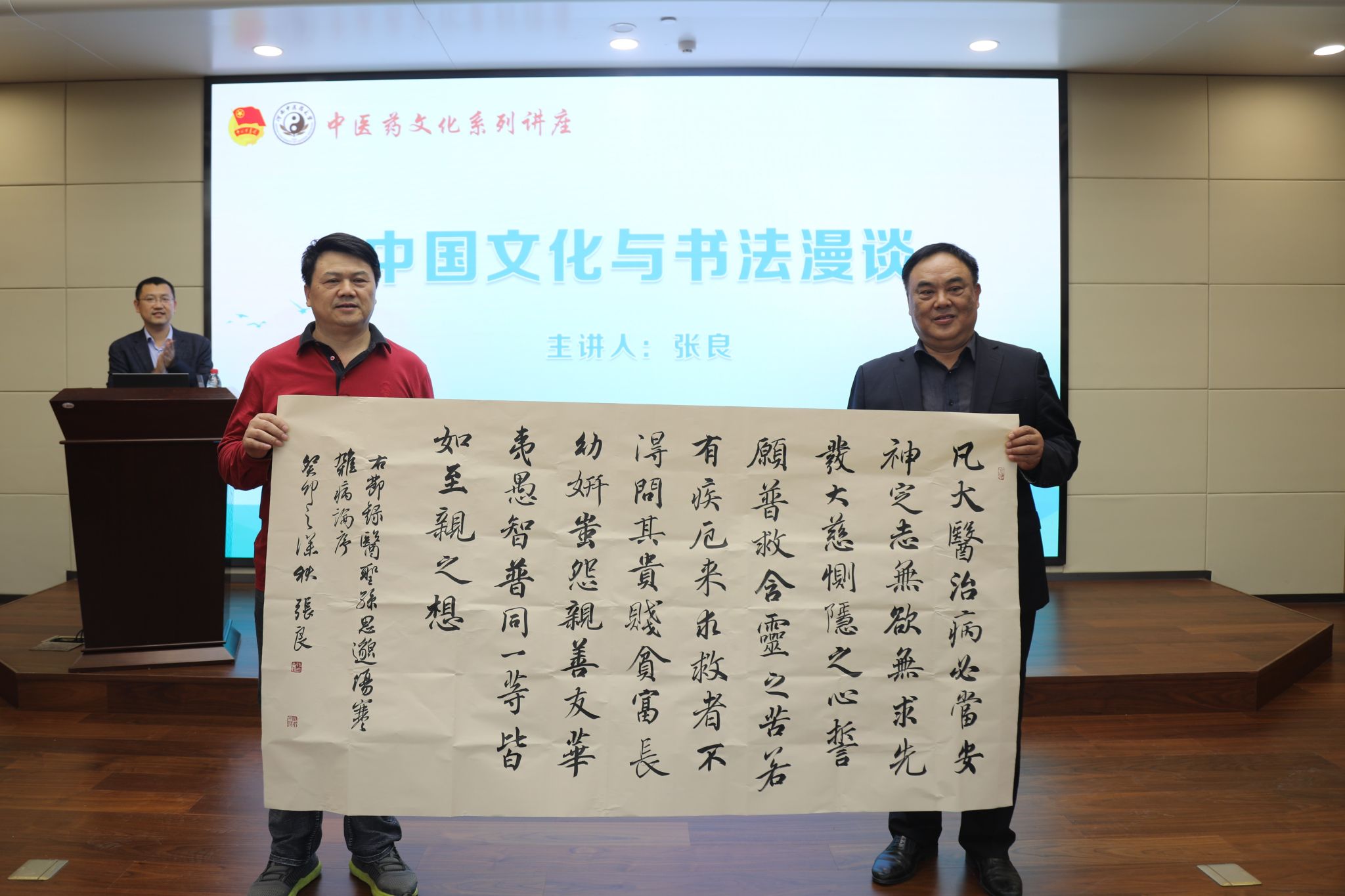 为庆祝我校建校65周年,张良专程创作书法作品《节录〈伤寒杂病论序〉》,与《墨韵拈趣——张良书法作品集》等一同捐赠予我校。通过讲座,丰富了同学们的课余文化生活,开阔了视野,加深了对书法的理解和赏析能力,引导青年学生认识到书法不仅是一种艺术,更是一种文化传承。