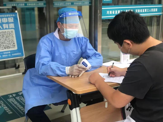 刘涛7月30日从北京刚刚回到郑州后,顾不上回家休息,31日又积极报名参加了一线抗疫,除了完成科室的正常工作外,还支援工作单位疫情防控的最前线门诊预检分诊,在高温的环境中很快就汗流浃背、无比辛苦,一层又一层的工作衣、防护衣和口罩面罩下,是刘涛8个月离家未归的医者坚守。